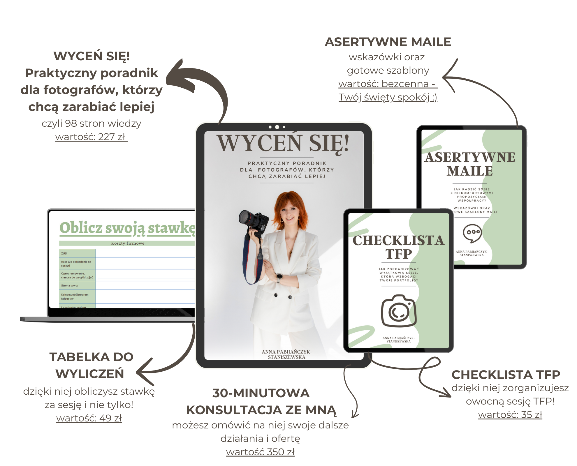 - „WYCEŃ SIĘ! Praktyczny poradnik dla fotografów, którzy chcą zarabiać lepiej”, czyli 98 stron konkretnej wiedzy bazującej na moim doświadczeniu.